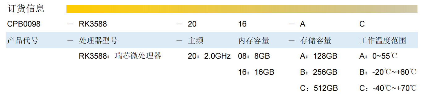 CPB0098是基于RK3588处理器设计的低功耗小型计算机模块 。RK3588集成了4个Cortex-A76和4个Cortex-A55及独立的NEON协处理器,适用于ARM PC 、边缘计算、个人移动互联网设备及其它多媒体产品。 模块全部使用SMT表面贴装工艺,整体结构紧凑,高可靠性、高抗振动冲击,无风扇设计。