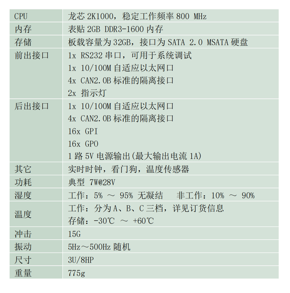 CPB5017是一款以国产龙芯2K1000为核心的 3U 主控器,具备多种通讯接口和大容量数据存储。整板全国产器件设计,功耗低,可靠性高。 产品采用SMT表面贴装工艺,导热铝合金冷板散热,整体结构紧凑, 抗振动冲击能力强,在开发使用中具有相当的灵活性。可应用于网络安全、政务办公平台、轨道交通、能源等控制领域。