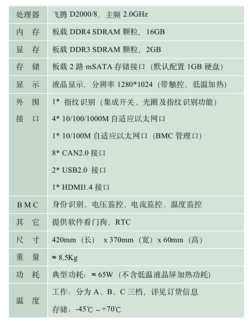 产品能效比高,具有完善的加固安装孔,兼容性好,在开发使用中具有相当高的灵活性。可应用于网络安全、政务办公平台、轨道交通、通信控制等领域。