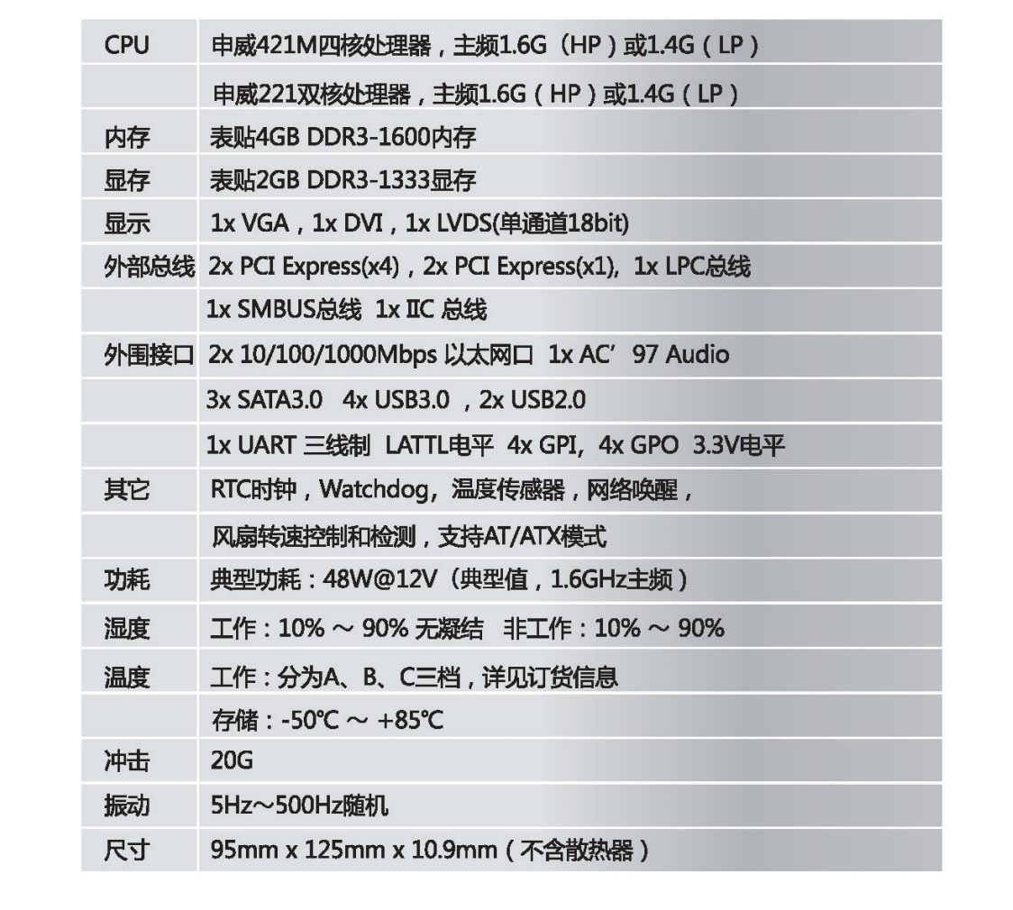 1. 基于国产申威处理器,主频1.6G(HP)或1.4G(LP)